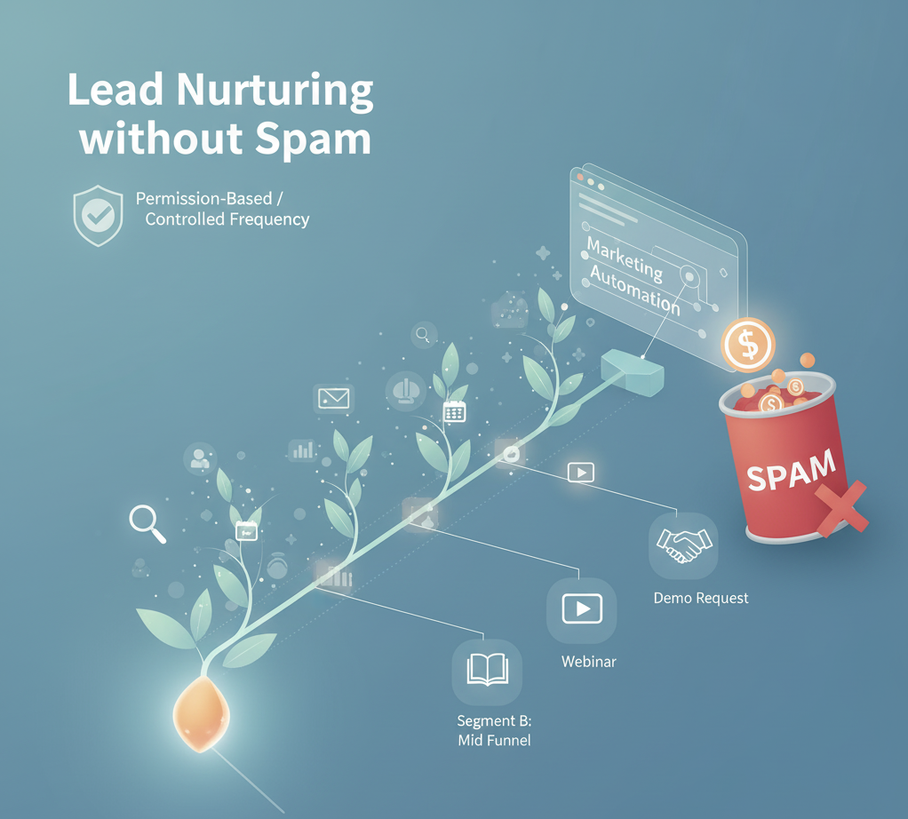 The foundation of non spammy nurturing is strategic segmentation. Sending the same generic emails to everyone on your list is the fastest way to trigger unsubscribes. Instead, leads should be segmented based on three key factors: source (where they came from), demographics (who they are—industry, size), and behavior (what they did—which content they downloaded, which pages they visited). By creating these distinct groups, you ensure that the content delivered is always relevant to their immediate context, whether they are a cold lead needing foundational education or a warm lead exploring pricing.